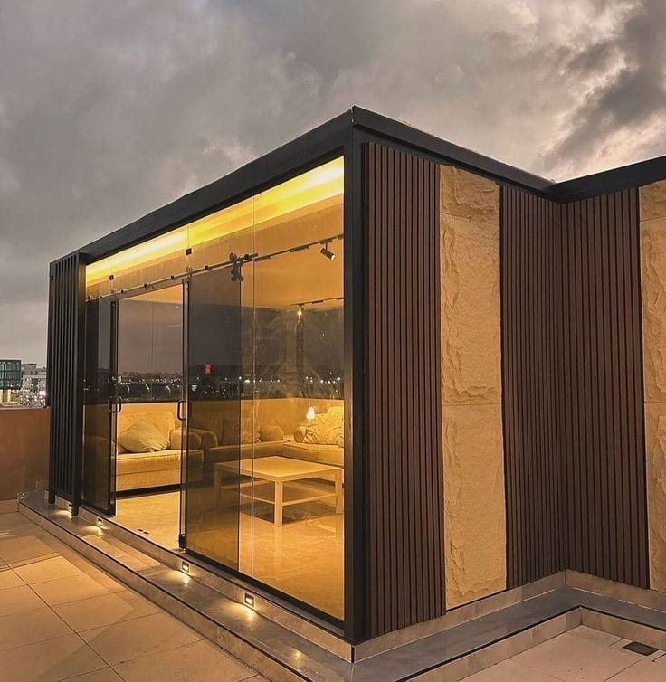 بإتقانٍ عالٍ وخبرة طويلة في مجال الإنشاءات العصرية، تقدّم مؤسسة نجوم الطبيعة خدمة تصميم وتنفيذ الغرف الزجاجية باحترافية وجودة مضمونة، لتمنح عملاءها مساحات أنيقة تجمع بين الفخامة والراحة والشفافية. تعد الغرف الزجاجية خيارًا مثاليًا للأفراد والمنشآت الراغبين في الاستمتاع بإطلالة واسعة على الطبيعة مع الحفاظ على الخصوصية والعزل الحراري والصوتي. لذلك نحرص في مؤسسة نجوم الطبيعة على تقديم حلول مبتكرة في تصميم الغرف الزجاجية باستخدام أفضل أنواع الزجاج والهياكل المعدنية المعالجة لضمان الثبات والمتانة لأطول فترة ممكنة.